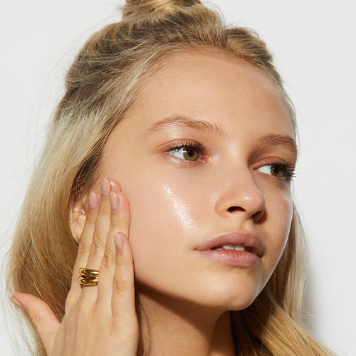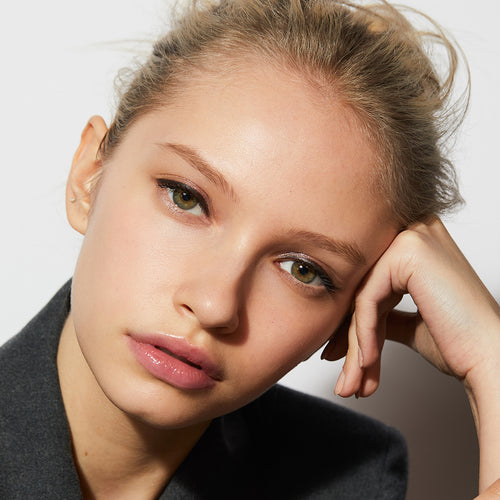 Apply two coats of The Mascara for definition and volume. Smooth Cool Gloss in Pastel Pink on lips.