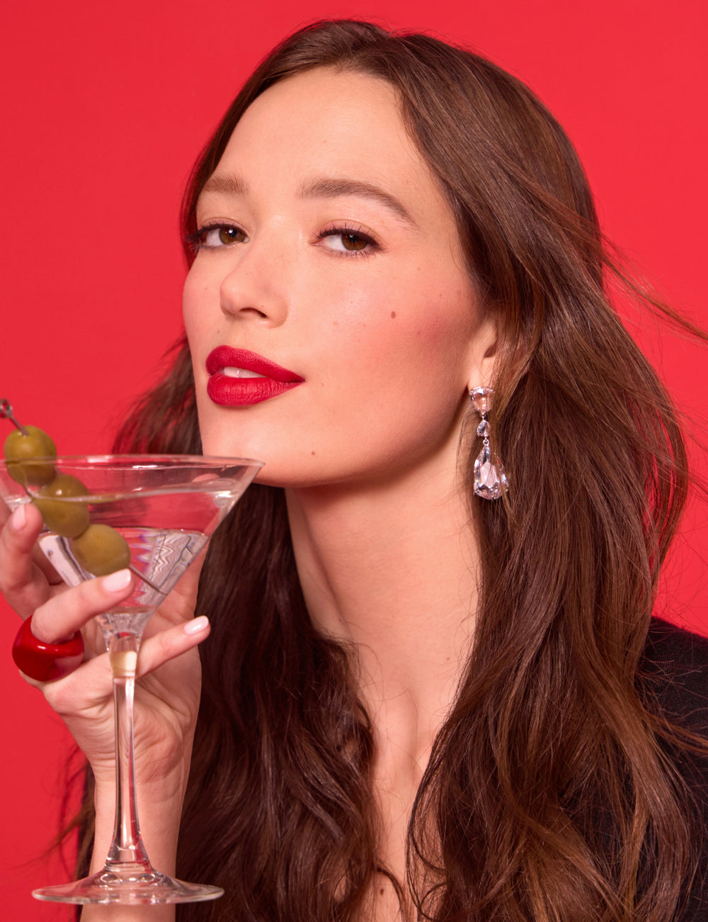 Lastly, define and bring out your eyes by lining with The Best Pencil in Brown and applying a few coats of The Mascara. Want to turn the look up for your post-sunset plans? Add a bold lip with The Lip Pencil in Ruby.