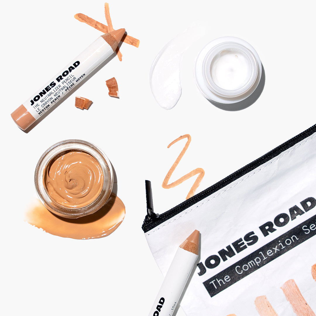 No matter how your skin wakes up, The Complexion Set has the tools you need for an even, natural, everyday look. It features four easy-to-use products — including the first-ever Mini What the Foundation and the Mini Eye Cream. The set also includes The Face Pencil, The Neutralizer Pencil, and a travel-friendly makeup bag to take it all with you on the go.