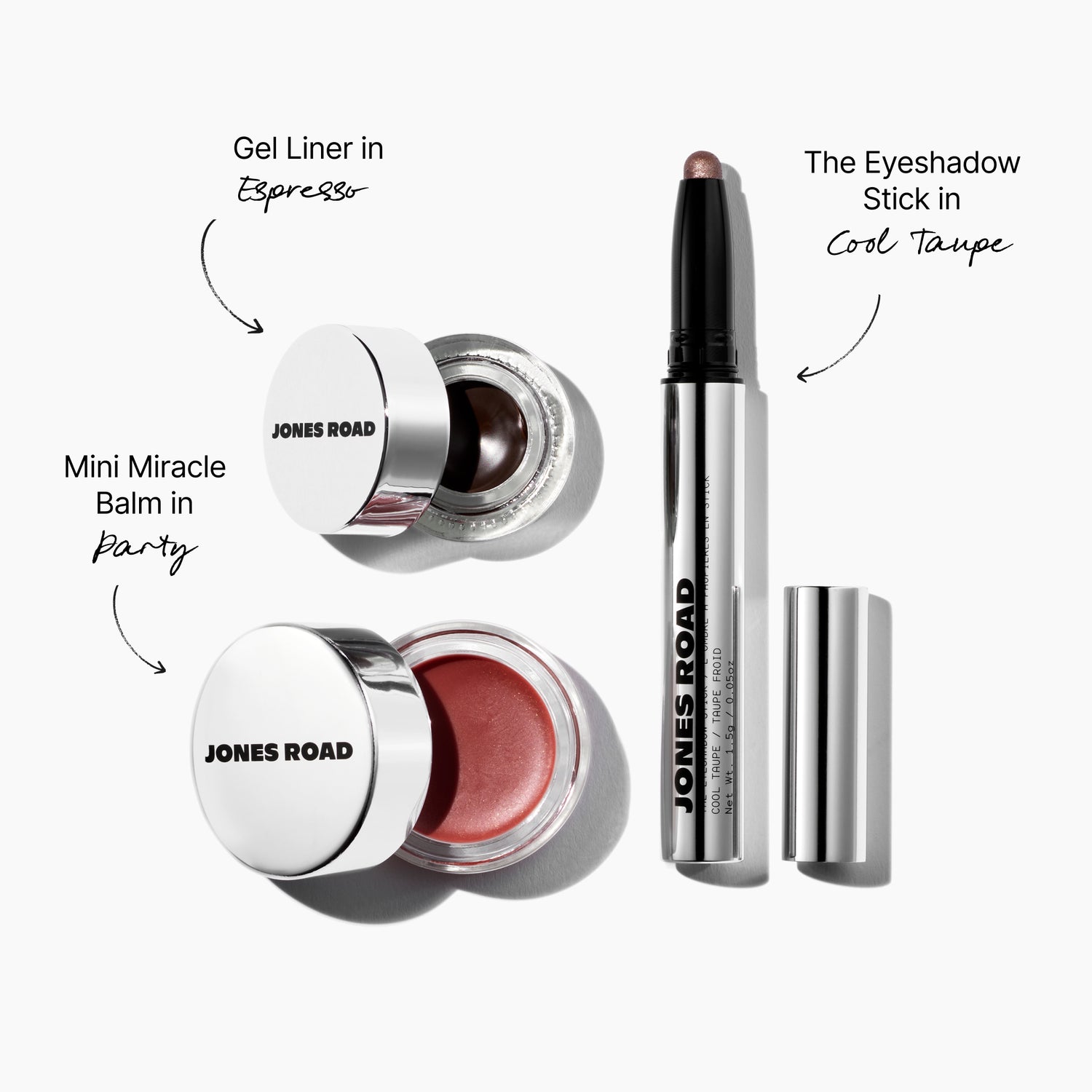 The Party Kit creates the ideal party-ready look with three finishing touches. Available in two colorways, Party and Rouge, each kit features a new and exclusive Eyeshadow Stick shade, a Gel Liner in the new shade Espresso, and an exclusive Mini Miracle Balm shade. For effortless striking eyes, a hint of shimmer, and plenty of definition, it’s the ultimate way to complete your celebration look.